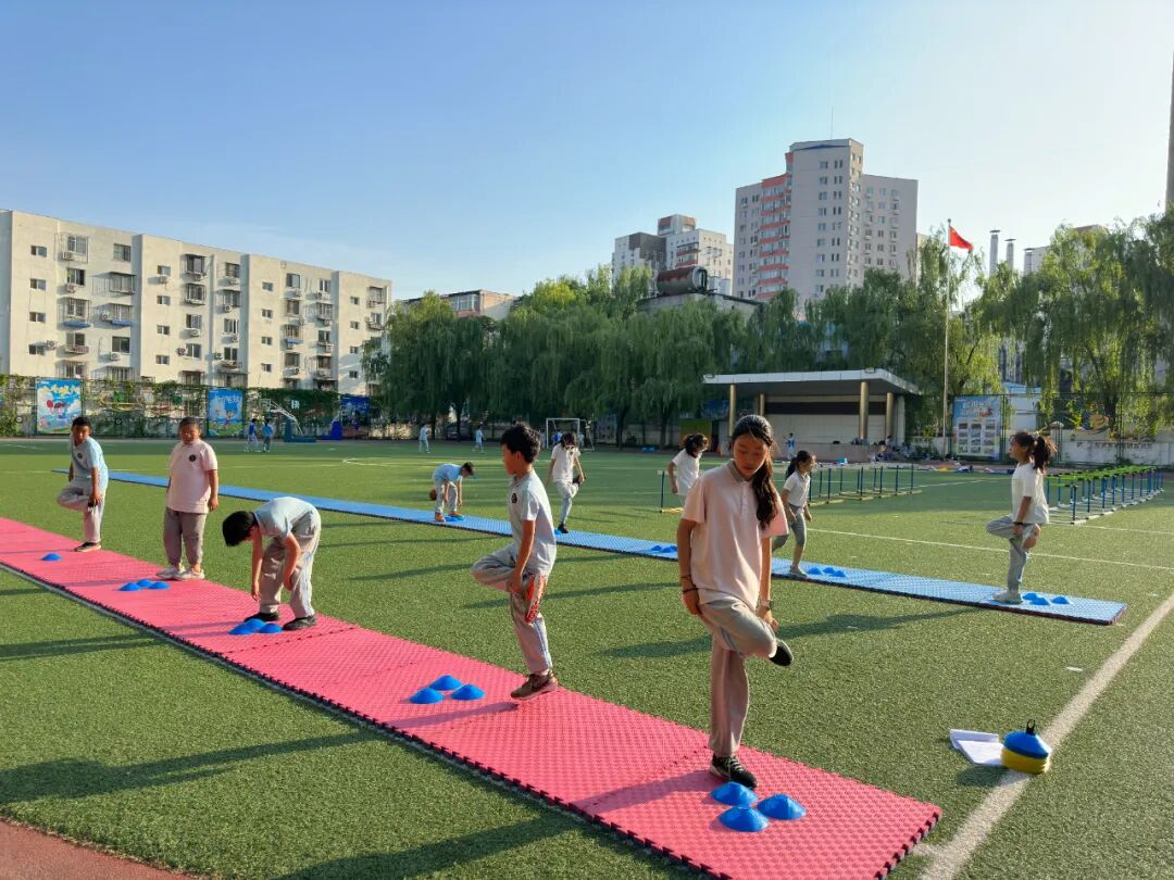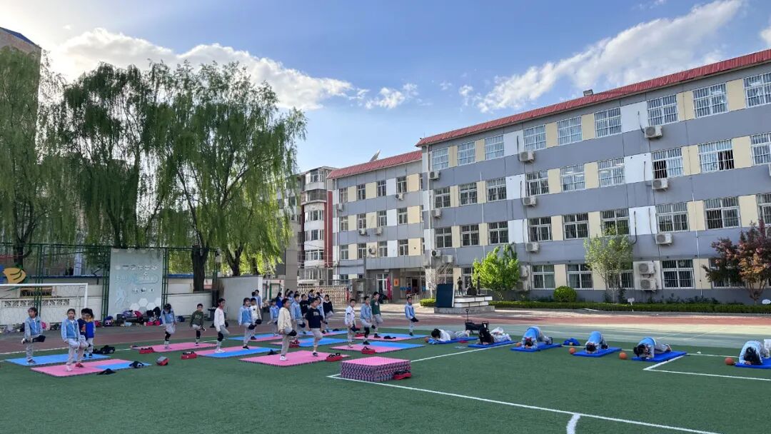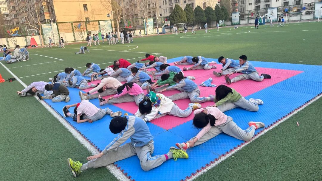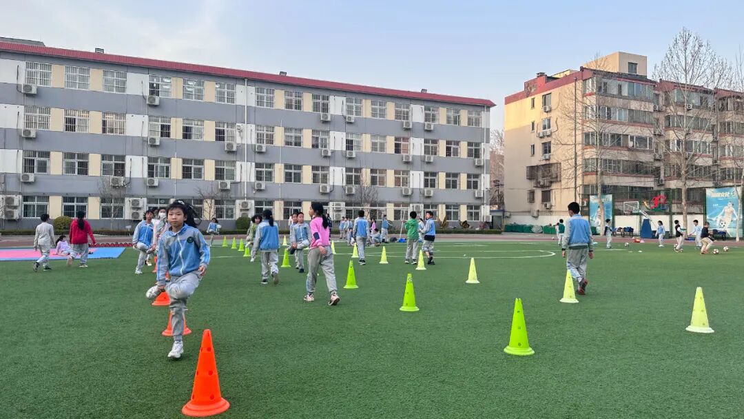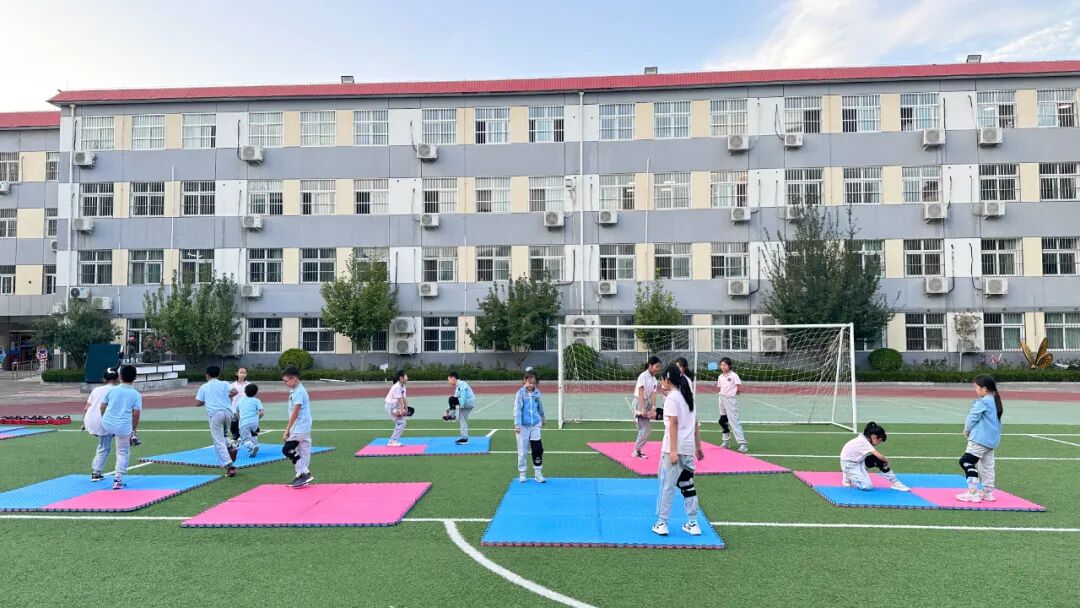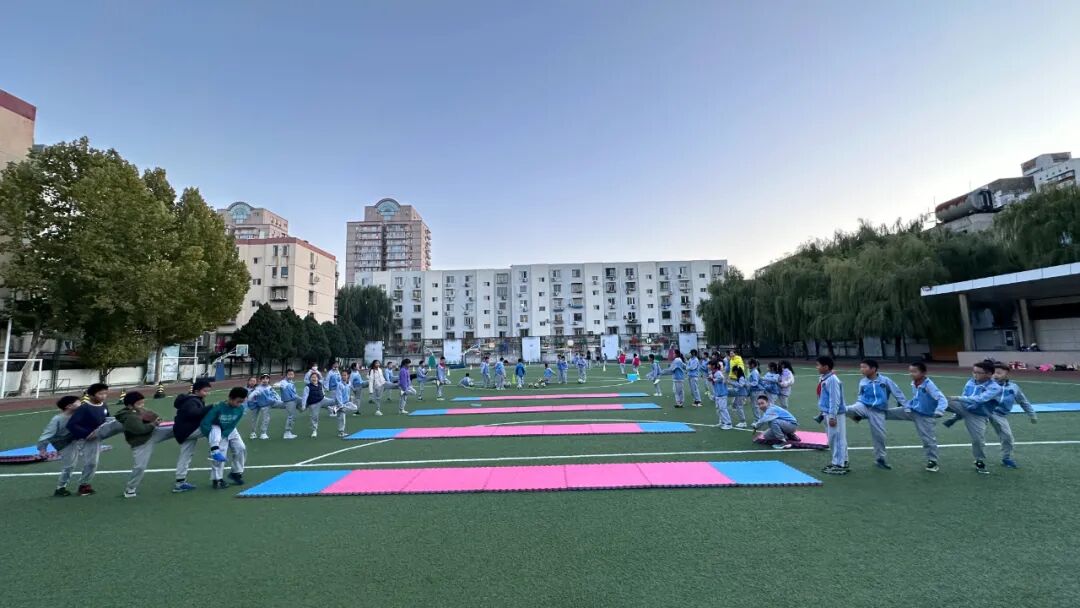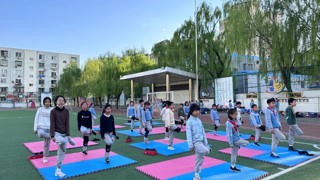 午后的阳光照射在体育场的绿荫草坪与跑道上,洒在二十几个孩子汗津津的脸上。他们两两对峙,单脚支撑,另一腿屈膝抬起,双手紧握脚踝,在教练的口令下进行着一次又一次灵活的步伐移动和有策略的对抗练习,这是北京市第八十中学枣营分校脚斗娃社团活动日常训练的场景。看似简单的动作背后,也是北京市第八十中学枣营分校脚斗娃社团五年来不简单的成长故事。